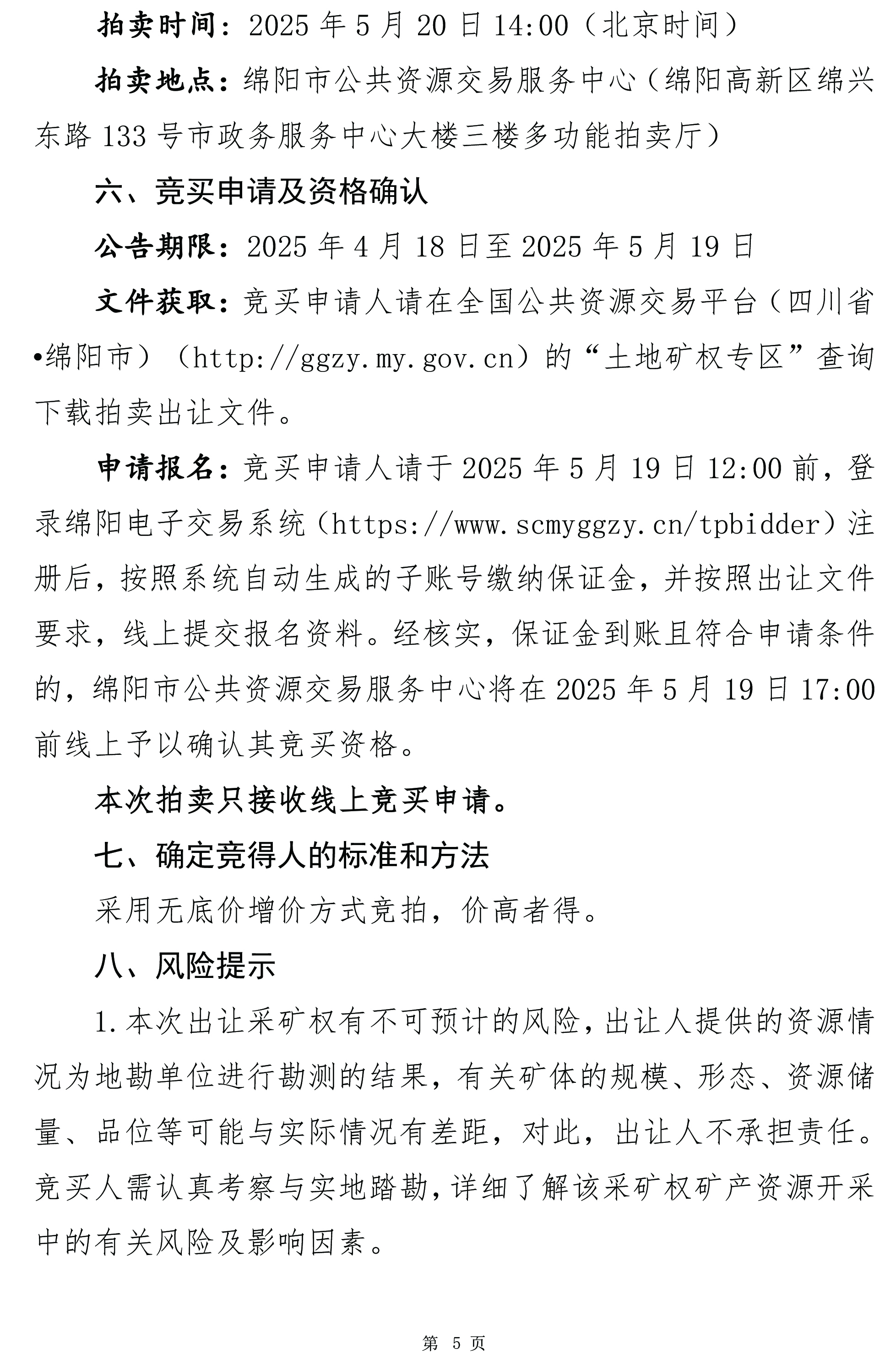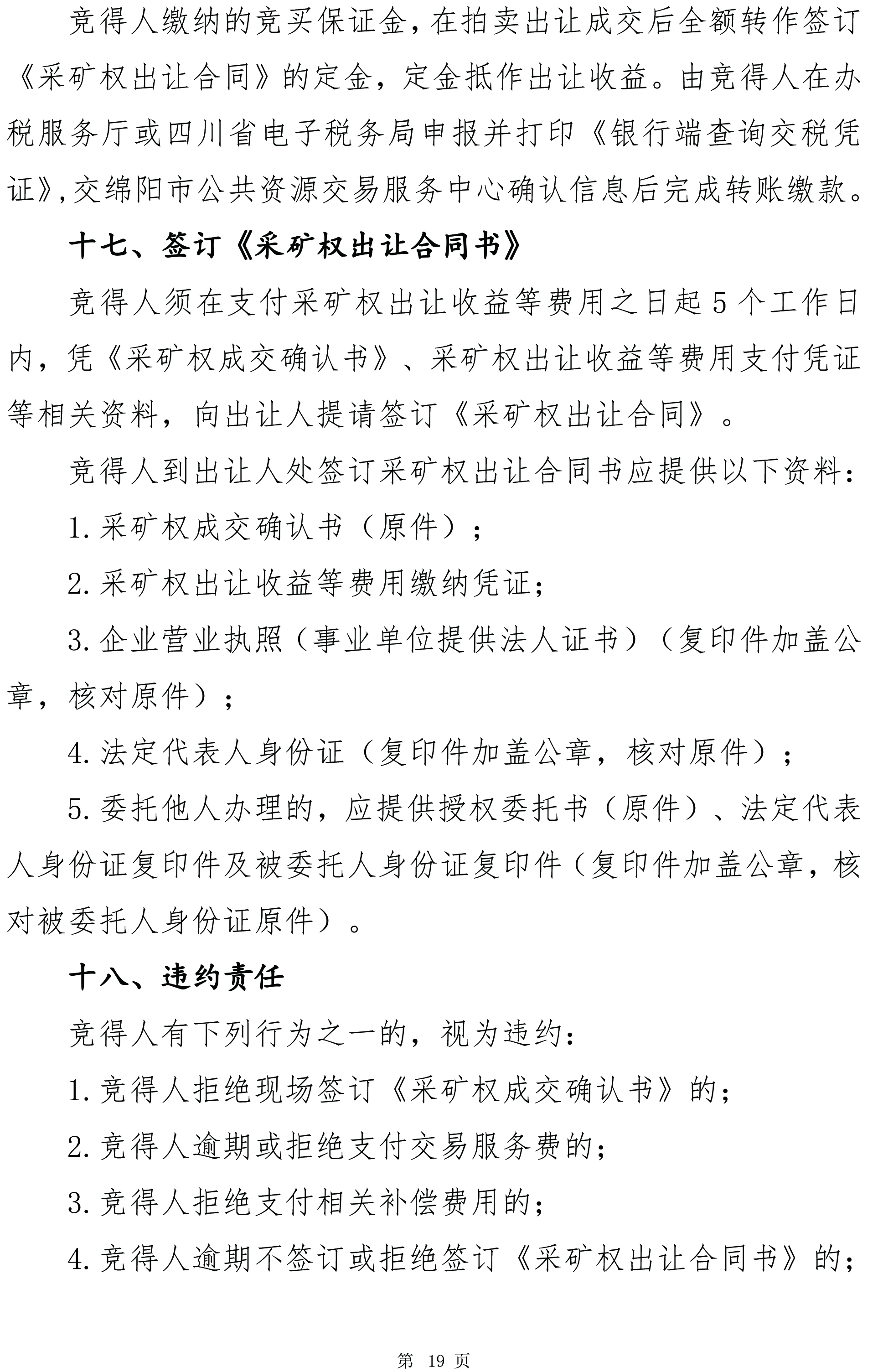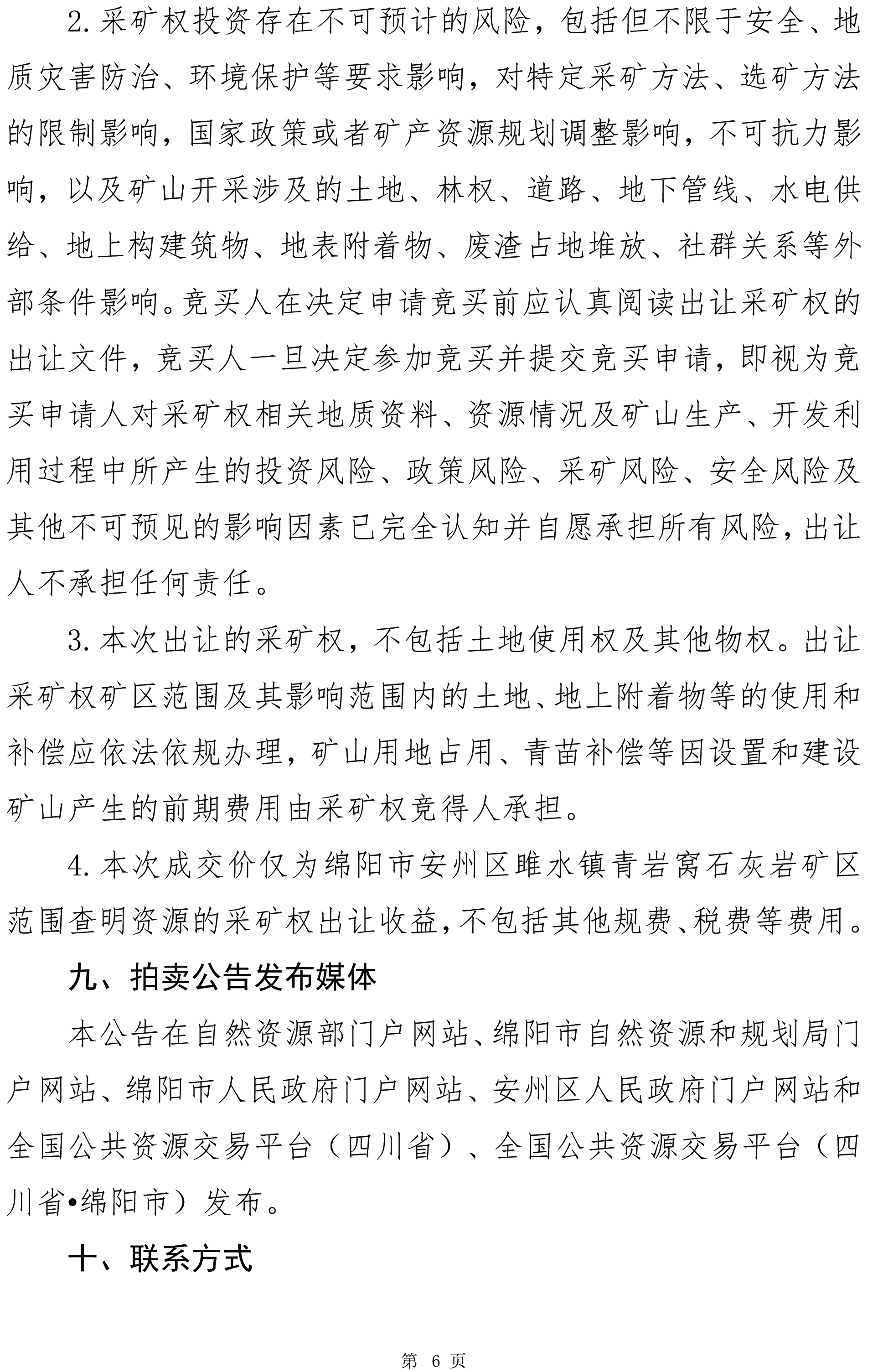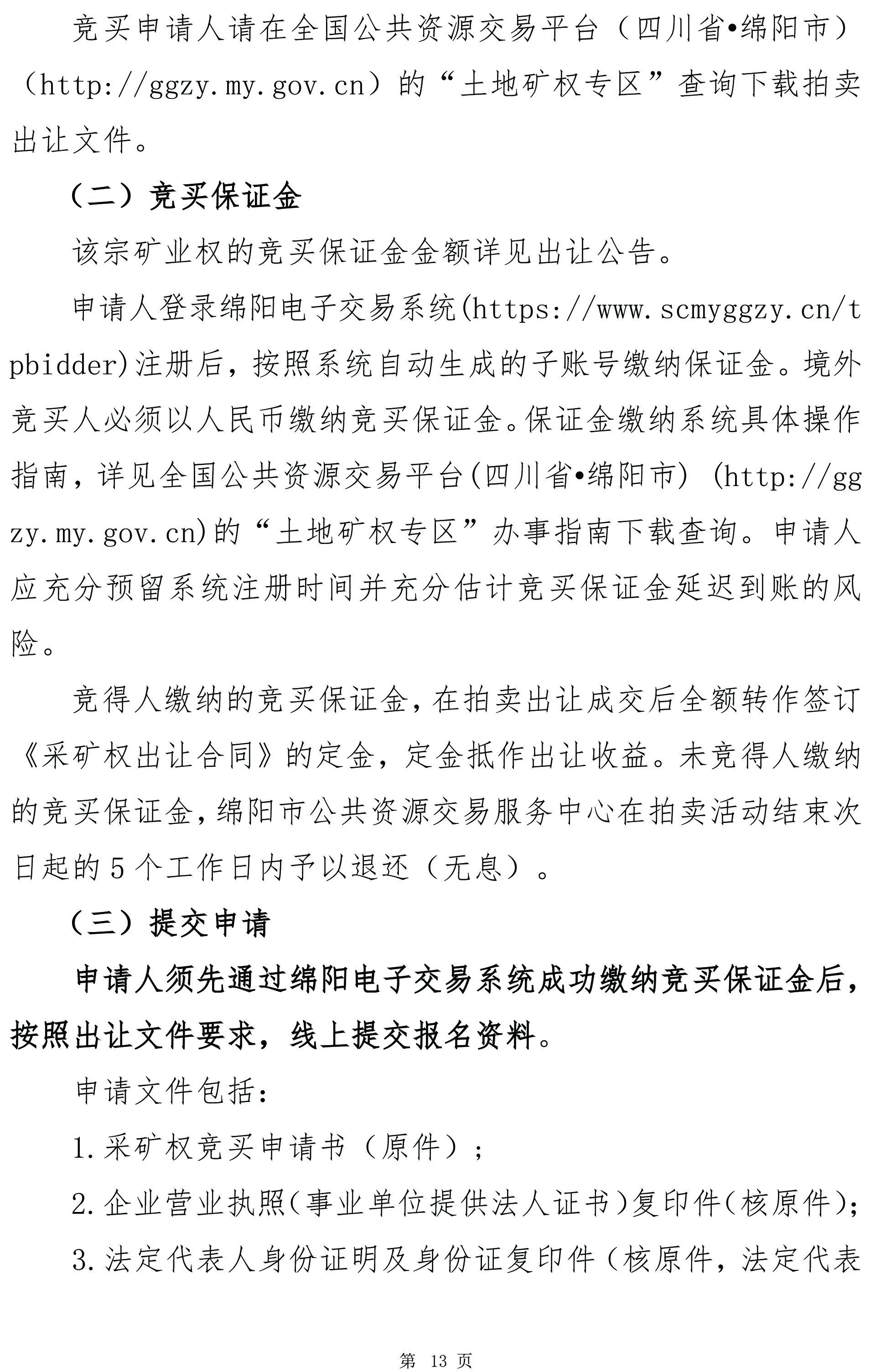 綿陽市安州區(qū)雎水鎮(zhèn)青巖窩石灰?guī)r礦拍賣出讓文件(編號:綿礦招拍掛〔2025〕3號)