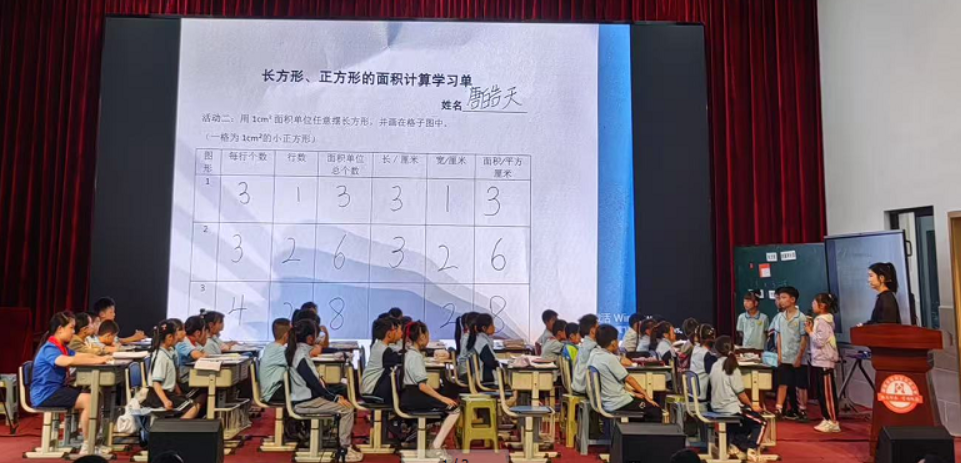 活動中,老師們圍繞《數(shù)學面積》同課異構(gòu)。讓學生自主探究總結(jié)算法,引導學生構(gòu)建知識模型,為教師提供了踐行新課標理念的教學思路。