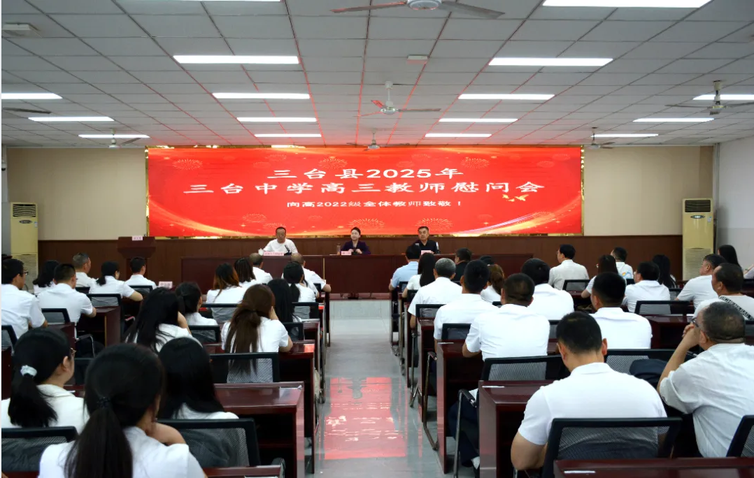 為了凝聚高三教師團(tuán)隊?wèi)?zhàn)斗力,踐行以生為本、尊師重教的理念,4月28日,三臺縣縣委、縣政府、縣教體局領(lǐng)導(dǎo)一行赴三臺中學(xué),開展了以“溫情備考 決勝高考”為主題的高三教師暖心慰問活動。三臺縣委常委、宣傳部部長、縣委教育工委書記鐘蓓,縣委教育工委常務(wù)副書記、縣教體局黨組書記、局長嚴(yán)剛出席活動??h教體局黨組成員胡運軍主持會議。