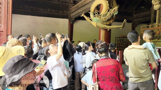 如今,報(bào)恩寺博物館積極運(yùn)用人工智能、多媒體等前沿技術(shù),實(shí)現(xiàn)從靜態(tài)展示到動(dòng)態(tài)體驗(yàn)的轉(zhuǎn)變。游客不僅可以一睹幾層樓高的轉(zhuǎn)輪經(jīng)藏真容,還能近距離欣賞明代壁畫,仿佛穿越時(shí)空,與歷史進(jìn)行一場(chǎng)深度對(duì)話。綿陽(yáng)游客譚孟汐告訴記者:“這是我第一次來(lái)報(bào)恩寺,轉(zhuǎn)輪經(jīng)藏給我留下了深刻印象。而且報(bào)恩寺的建筑都是用金絲楠木建造的,沒(méi)用一個(gè)釘子和水泥,太神奇了。”