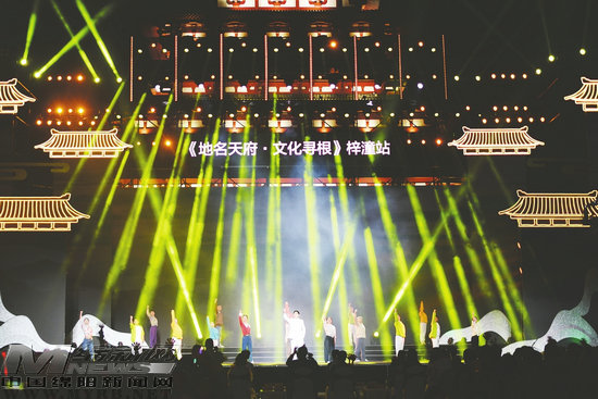 當晚的文藝匯演是本次活動重頭戲。文藝匯演分為古道唐風、古道回聲、古道新章、古道千年四個篇章,以時空對話、“地圖串場+情景表演”的表現(xiàn)形式,從地名文化角度引領(lǐng)公眾感受時代脈動、傾聽歷史足音、探尋社會演進,用直觀的表演展示古蜀道所孕育的璀璨歷史和人文風情,再現(xiàn)古蜀道歷史演進和時代變遷下的文化綿延與賡續(xù)。