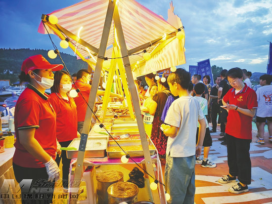 與樂跑賽事同步進(jìn)行的,是章邦小草原上熱鬧非凡的鄉(xiāng)村市集。20余個(gè)展位整齊排列,桑葉茶、嫘祖豆瓣等當(dāng)?shù)靥禺a(chǎn)琳瑯滿目,現(xiàn)蒸的“梓江鱖魚”香氣四溢,吸引眾多游客駐足品嘗。舞臺(tái)中央,獨(dú)唱、歌舞等精彩表演輪番上演,觀眾們席地而坐,一邊欣賞演出,一邊感受鄉(xiāng)村晚風(fēng)的輕撫,享受著難得的悠閑時(shí)光。高渠鎮(zhèn)黨委副書記、鎮(zhèn)長(zhǎng)魏川介紹:“樂跑不僅是一項(xiàng)健身活動(dòng),更是一個(gè)窗口,讓大家有機(jī)會(huì)深入感受鄉(xiāng)村的生態(tài)之美。未來,我們將常態(tài)化開展鄉(xiāng)村文化市集和各類文旅活動(dòng),讓游客來了就不想走,走了還想再來。”