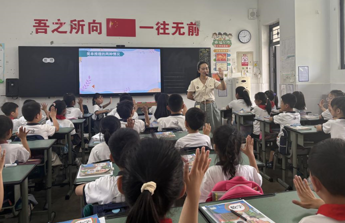 5月8日,數(shù)學(xué)匯報(bào)課在全校教師的期待中拉開(kāi)帷幕。銀靜老師以聲勢(shì)律動(dòng)“我說(shuō)你做”的小游戲?qū)耄ㄟ^(guò)“說(shuō)一說(shuō)”“畫(huà)一畫(huà)”“寫一寫”等活動(dòng),讓學(xué)生在動(dòng)手操作中理解推理的過(guò)程。課堂中,南通“學(xué)科融合·小組合作”的理念得以體現(xiàn):學(xué)生從疑惑到頓悟的思維過(guò)程被充分尊重,音樂(lè)節(jié)奏式表達(dá)與生生互動(dòng)成為亮點(diǎn)。本節(jié)課巧妙融入游戲化學(xué)習(xí)、跨學(xué)科融合、信息技術(shù)等手段,課堂氛圍活躍,學(xué)生思維迸發(fā)。聽(tīng)課教師評(píng)價(jià):“南通經(jīng)驗(yàn)與我校‘活力課堂’理念有機(jī)融合,真正實(shí)現(xiàn)了‘他山之石,可以攻玉’。”