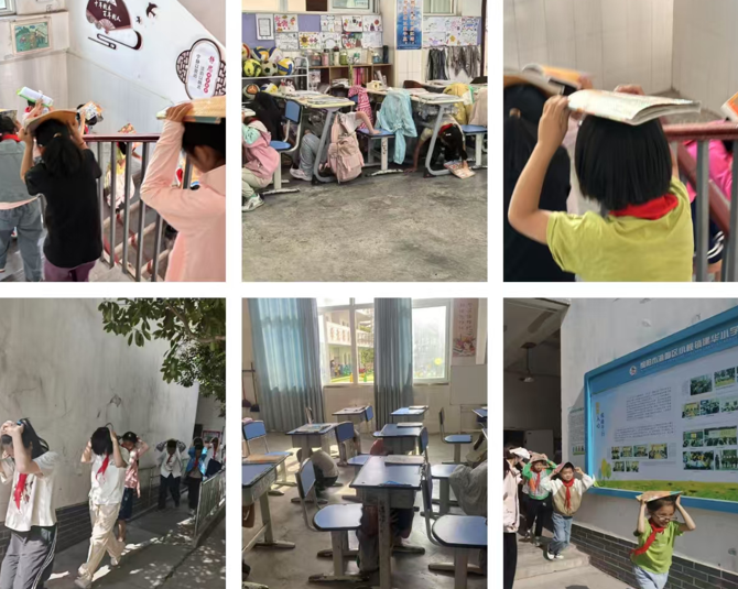 上午9:20,防空警報拉響,帶班教師迅速指揮學(xué)生蹲伏到課桌下,用書本護(hù)住頭部并抓牢桌腿。1分鐘后,疏散指令下達(dá),學(xué)生們護(hù)頭彎腰,按照樓層分流方案有序撤離。樓道內(nèi),教師全程引導(dǎo),重點(diǎn)管控樓梯轉(zhuǎn)角,嚴(yán)防踩踏事故發(fā)生。全體師生在3分鐘內(nèi)安全集結(jié)到操場,并以課間操隊形進(jìn)行清點(diǎn)匯報。