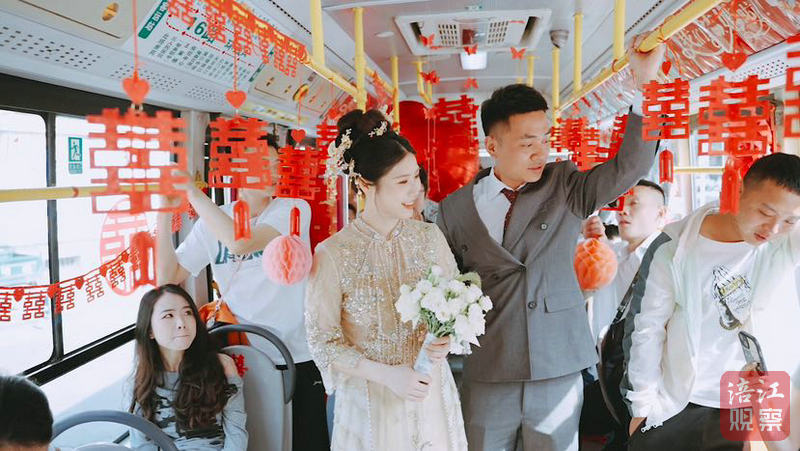 新娘諾媛說:“現在國家提倡綠色環(huán)保,‘公交婚禮’接親一趟的價格在600元左右,比較經濟實惠,而且親友聚在一輛車里,氛圍超好。”