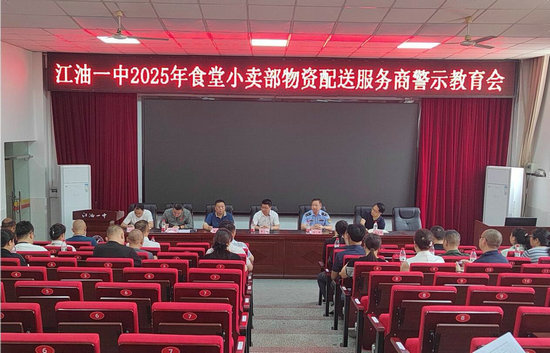 綿陽新聞網(wǎng)訊 為了進(jìn)一步構(gòu)建陽光食安體系,筑牢校園健康屏障,5月15日,江油一中繼“食堂開放日”后,召開了以“筑牢食安防線 護(hù)航百年樹人”為主題的2025年食堂小賣部物資配送服務(wù)商警示教育會(huì)。會(huì)議由總務(wù)處主任何飛主持,該校黨委副書記、校長(zhǎng)董軍,黨委委員、分管副校長(zhǎng)楊永平,監(jiān)察室主任羅少華,市城北市場(chǎng)監(jiān)管所周靜所長(zhǎng),膳食監(jiān)督委員會(huì)家長(zhǎng)代表及該??倓?wù)處、小賣部、食堂相關(guān)人員共同出席會(huì)議,與供應(yīng)商們共話食安大計(jì),同筑廉潔防線。