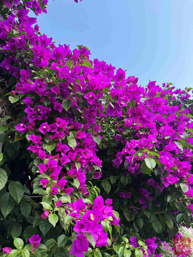 它總是不懼驕陽、不畏風雨,蓬勃熱烈地開放。微風吹過,三角梅沿著墻體傾瀉而下,形成“花瀑”,與時光碰撞出夏日詩意。
