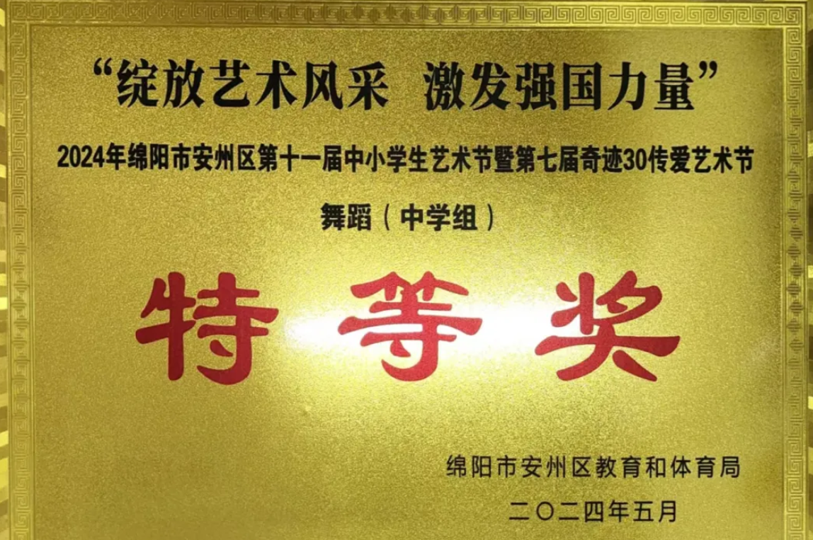 該校在2024年安州區(qū)第十一屆中小學(xué)藝術(shù)節(jié)暨第七屆奇跡30傳愛藝術(shù)節(jié)上表演的舞蹈《春種》榮獲中學(xué)組特等獎(jiǎng);同時(shí),該校集體還榮獲2024年安州區(qū)第十一屆中小學(xué)藝術(shù)節(jié)暨第七屆奇跡30傳愛藝術(shù)節(jié)“特殊貢獻(xiàn)獎(jiǎng)”殊榮。(鄭 敏 黃友勇)