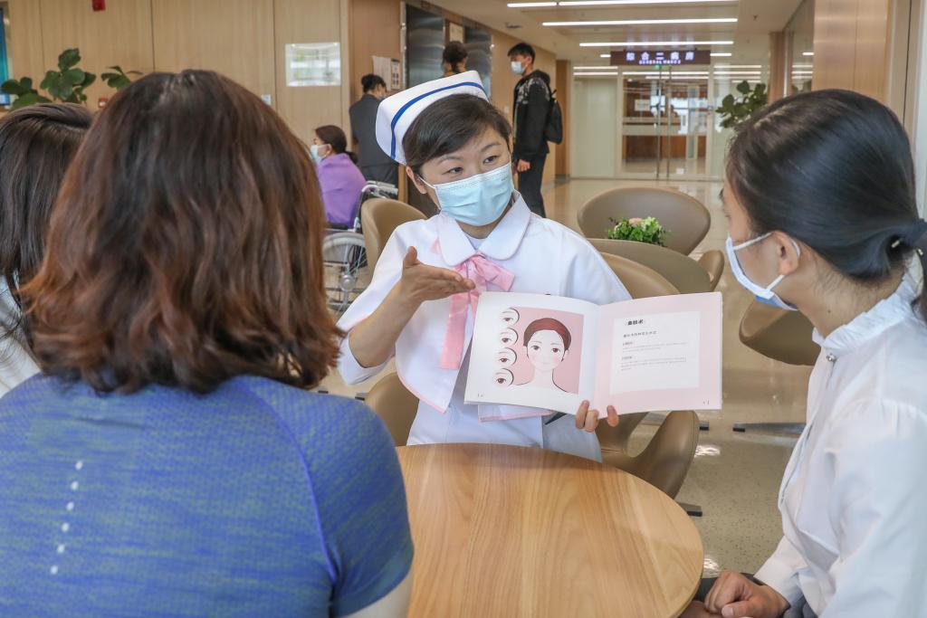 北京協(xié)和醫(yī)院南丁格爾護理志愿服務(wù)隊成員正在進行醫(yī)美科普宣教。新華社記者 張玉薇 攝