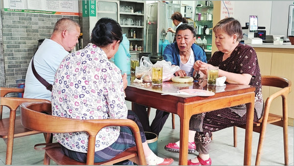 “我們4人住在同一個(gè)小區(qū),以前,一兩個(gè)人在家,買(mǎi)菜做飯很麻煩,現(xiàn)在有了幸福餐廳,每天準(zhǔn)點(diǎn)吃飯,庭院里還有活動(dòng)空間,環(huán)境優(yōu)美,飯后可在這里下棋、打牌、聽(tīng)評(píng)書(shū)。”6月20日上午10時(shí)許,走進(jìn)涪城區(qū)涪光里平政社區(qū)幸福餐廳,不少老人一大早就來(lái)了,聚在庭院里喝茶聊天嘮家常,助餐點(diǎn)工作人員忙著準(zhǔn)備午飯。
