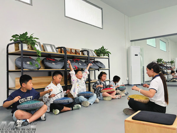 孩子們在老師的指導(dǎo)下專心學(xué)習(xí)樂器演奏