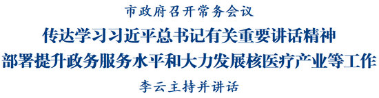 綿陽新聞網(wǎng)訊 7月4日,市政府召開第111次常務(wù)會(huì)議,傳達(dá)學(xué)習(xí)習(xí)近平總書記有關(guān)重要講話精神,部署提升政務(wù)服務(wù)水平和大力發(fā)展核醫(yī)療產(chǎn)業(yè)等工作。市委副書記、市長(zhǎng)李云主持會(huì)議并講話。