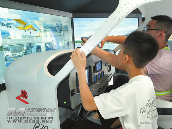 孩子們?cè)诒贝ㄓ啦龣C(jī)場(chǎng)體驗(yàn)全真模擬飛行器