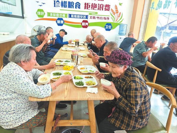 肉沫豇豆、辣椒炒肉、白油冬瓜、外加一碗紫菜湯,7月3日中午12時(shí)許,78歲的楊順昌像往常一樣,走進(jìn)位于花荄鎮(zhèn)羅林社區(qū)的“幸福餐廳”,享受午餐美好“食”光。“在家做飯花一上午時(shí)間,一頓吃不完下頓吃剩菜,現(xiàn)在樓下開了這個(gè)餐廳,每天準(zhǔn)點(diǎn)過來吃飯,一頓才花10元錢,和鄰里邊吃邊聊,省心又溫馨。”楊順昌說。