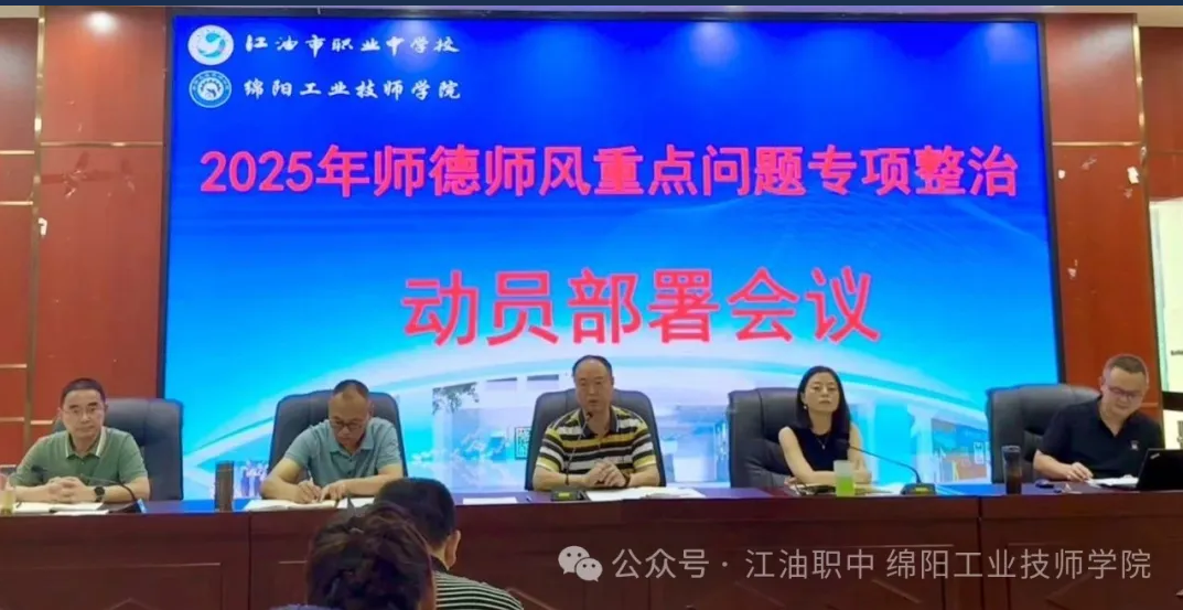 為了深入貫徹落實(shí)立德樹(shù)人根本任務(wù),扎實(shí)推進(jìn)《四川省中小學(xué)教師違反職業(yè)道德行為處理實(shí)施細(xì)則》及《江油市教體局2025年師德師風(fēng)重點(diǎn)問(wèn)題專項(xiàng)整治工作方案》的要求,持續(xù)加強(qiáng)教師隊(duì)伍職業(yè)道德建設(shè),7月4日上午,江油市職業(yè)中學(xué)校暨綿陽(yáng)工業(yè)技師學(xué)院在學(xué)校多功能廳召開(kāi)了2025年師德師風(fēng)重點(diǎn)問(wèn)題專項(xiàng)整治會(huì)。會(huì)議旨在傳達(dá)、學(xué)習(xí)師德師風(fēng)相關(guān)文件精神,強(qiáng)化教師行為規(guī)范。會(huì)議由該校黨委副書(shū)記、副校長(zhǎng)楊屏同志主持。