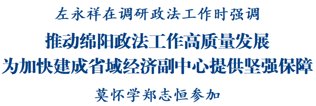 綿陽(yáng)新聞網(wǎng)訊 7月15日,省委常委、副省長(zhǎng)、市委書記左永祥前往涪城區(qū)、高新區(qū)(科技城直管區(qū))調(diào)研政法工作。他強(qiáng)調(diào),要深入學(xué)習(xí)貫徹習(xí)近平法治思想和習(xí)近平總書記關(guān)于政法工作的重要指示精神,聚焦服務(wù)中心大局,以促進(jìn)社會(huì)公平正義、增進(jìn)人民福祉為出發(fā)點(diǎn)和落腳點(diǎn),忠誠(chéng)履職、擔(dān)當(dāng)作為,推動(dòng)綿陽(yáng)政法工作高質(zhì)量發(fā)展,為加快建成省域經(jīng)濟(jì)副中心提供堅(jiān)強(qiáng)保障。