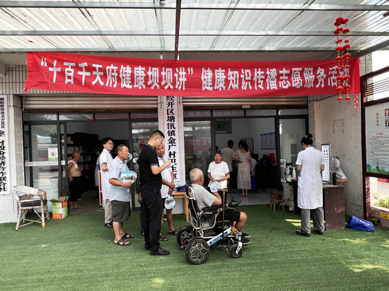 綿陽(yáng)新聞網(wǎng)訊 為積極響應(yīng)上級(jí)部門深化健康素養(yǎng)促進(jìn)行動(dòng)的號(hào)召,進(jìn)一步夯實(shí)基層公共衛(wèi)生服務(wù)網(wǎng)絡(luò),有效提升轄區(qū)居民健康素養(yǎng)水平和自主防病能力,2025年7月15日上午,綿陽(yáng)經(jīng)開區(qū)塘汛街道社區(qū)衛(wèi)生服務(wù)中心聯(lián)合綿陽(yáng)市第三人民醫(yī)院、綿陽(yáng)市萬(wàn)江眼科醫(yī)院組成的9人義診小隊(duì)走進(jìn)塘汛街道金廣村,開展了“一村一月一義診”及“十百千天府健康壩壩講”系列健康知識(shí)傳播活動(dòng)。本次活動(dòng)將接地氣的“壩壩文化”與實(shí)用健康科普深度融合,讓專業(yè)醫(yī)療知識(shí)“飛入尋常百姓家”。