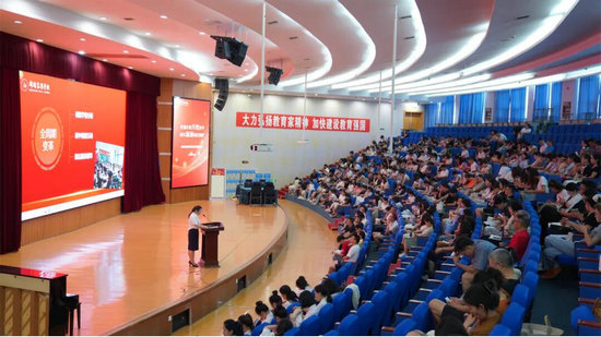 隨后,梁春艷立足當(dāng)前教育發(fā)展大勢(shì),客觀剖析了學(xué)校面臨的機(jī)遇與挑戰(zhàn),直指發(fā)展中的短板弱項(xiàng)并提出系統(tǒng)性解決方案。她著重強(qiáng)調(diào),這份亮眼答卷的每一頁(yè)都浸透著全體教師的心血與汗水,她寄語(yǔ)全體教職工,要以教育家精神為引領(lǐng),深耕課堂主陣地、厚植愛(ài)生情懷,在新學(xué)年錨定目標(biāo)、勇毅篤行,續(xù)寫(xiě)追光逐夢(mèng)的嶄新篇章。