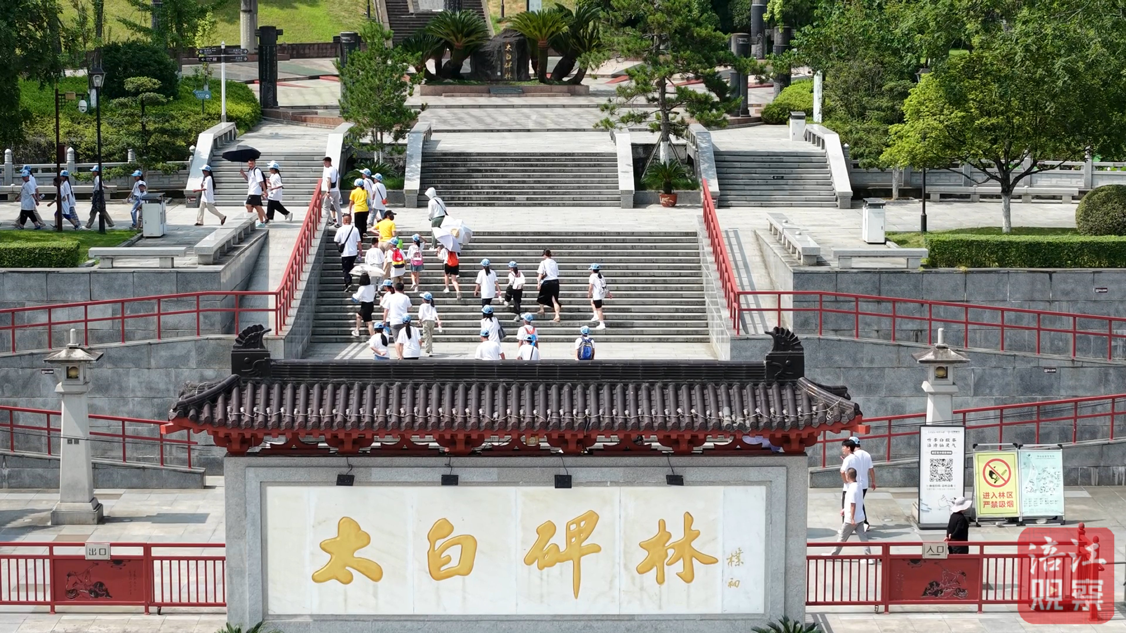 “床前明月光,疑是地上霜……”15日下午,隴西院的庭院里傳來清脆的集體朗誦聲。營員們踩著青石板路,在講解員的指引下參觀太白故居。宋代石槽旁,“鐵杵成針”的傳說被生動還原;明代碑刻前,李白少年時苦讀的故事讓孩子們駐足傾聽。