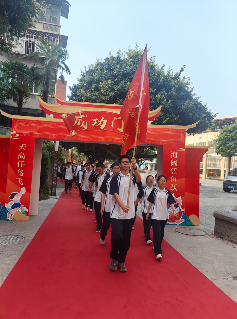 最激動人心的環(huán)節(jié)到來!各班在班主任的帶領下,旗手高擎班旗,學子們步伐堅定,依次邁過象征著奮斗與成長的“高三門”。教學樓上懸掛的勵志條幅迎風招展,這一刻,每一步都是承諾,每一秒都是誓言!