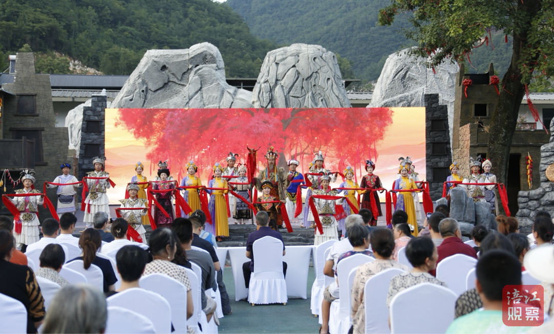 活動現(xiàn)場,羌笛悠揚,民族文化氣息濃郁。會上,禹泉文旅集團(tuán)總經(jīng)理李勝詳細(xì)介紹了公司在石椅羌寨鄉(xiāng)村振興先行區(qū)農(nóng)文旅產(chǎn)業(yè)及研學(xué)業(yè)務(wù)的運行情況與發(fā)展思路,并發(fā)布《走北川?云朵上的爾瑪》羌族民俗風(fēng)情實景劇。作為此次活動的重頭戲,該劇是對原有實景劇目的升級改造,以民族文化為核心,承載著傳承與創(chuàng)新的使命,其發(fā)布備受各方關(guān)注。