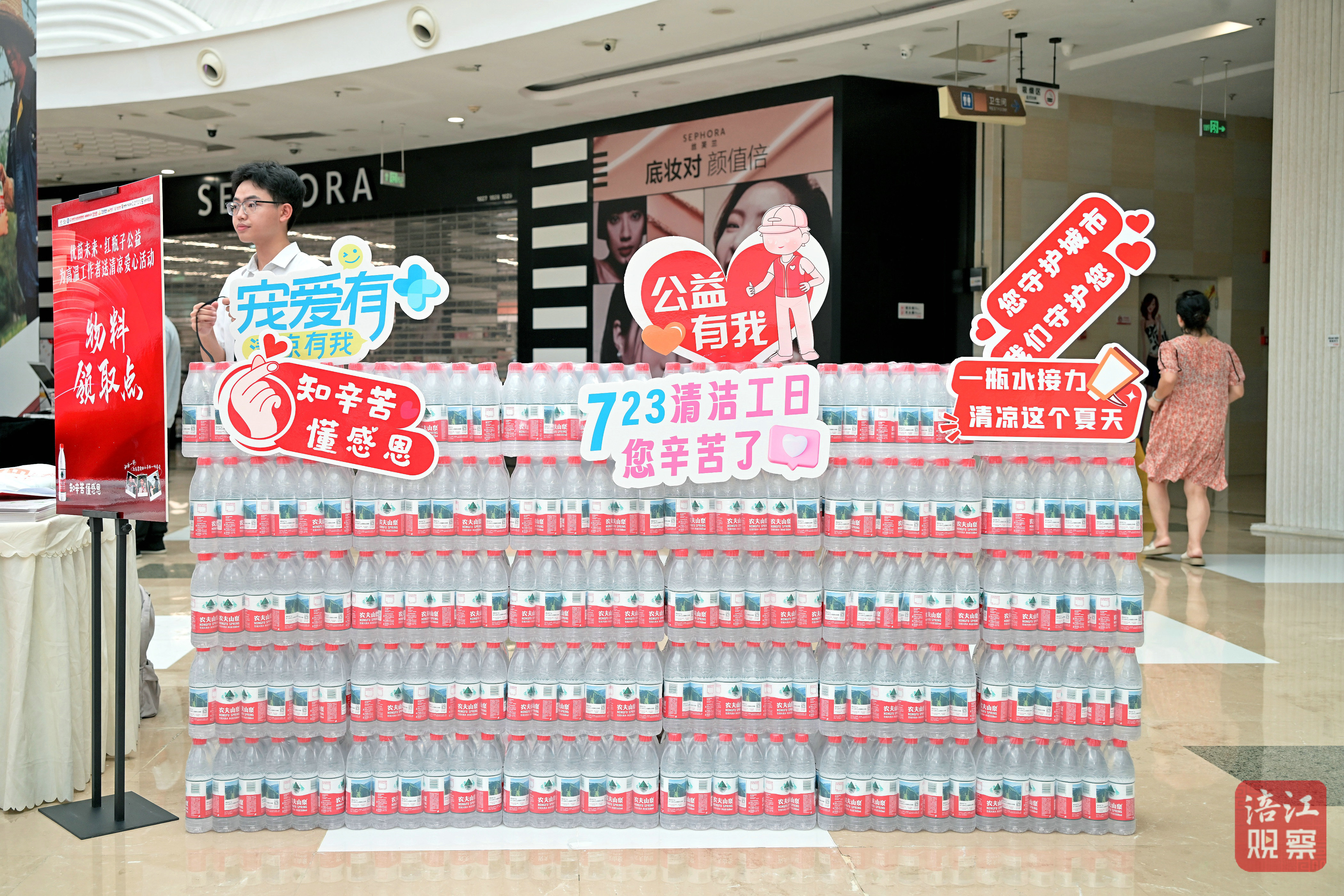“阿姨,天氣炎熱,送您一瓶水,注意不要中暑了。”在涪城區(qū)萬達(dá)商圈,9歲的小志愿者陽奕涵踮起腳,將一瓶貼著祝福語的農(nóng)夫山泉遞給正在工作的環(huán)衛(wèi)工人。“參加此次活動,我體會到了這份工作的艱辛與不易,以后會更加珍惜他們的勞動成果,保持城市環(huán)境的干凈整潔。”