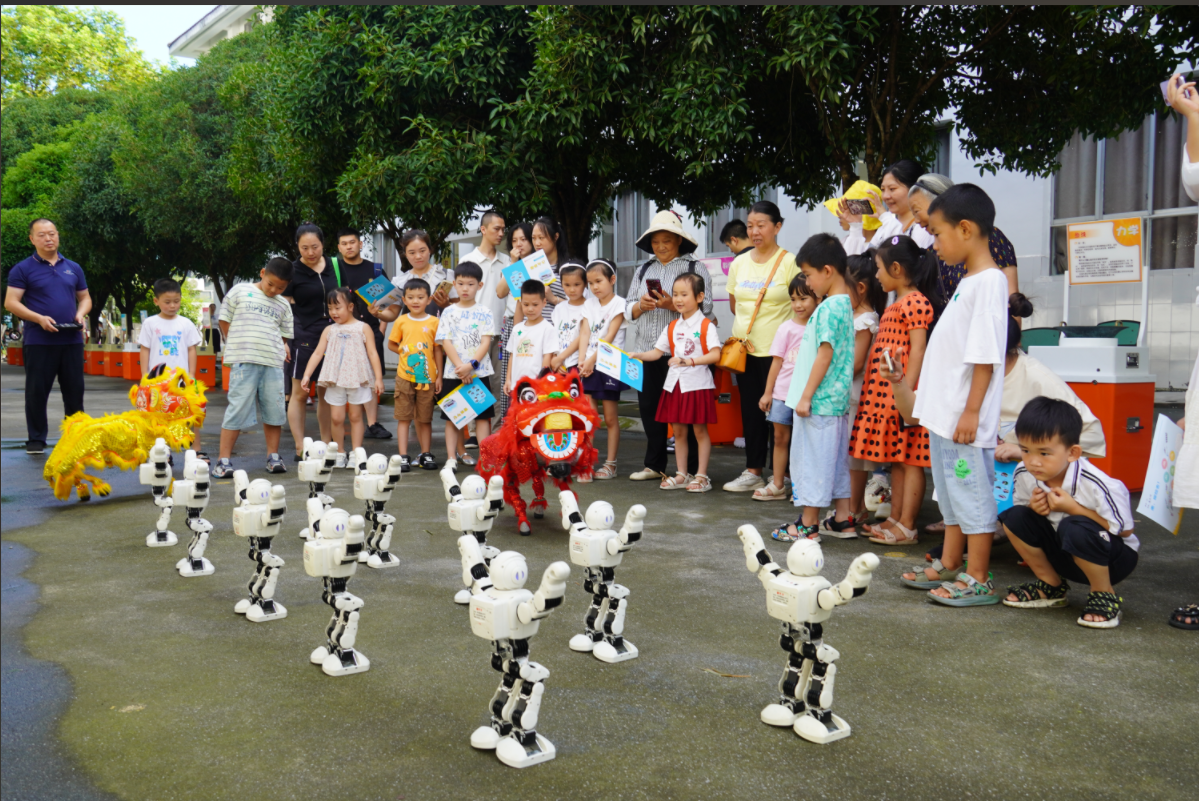 “科技未來(lái)艙”炫酷互動(dòng):品智樓前的中操場(chǎng)成為科技樂園。靈活的機(jī)器狗穿梭在孩子間,通過智能感應(yīng)完成握手、跟隨等趣味互動(dòng),引發(fā)陣陣歡笑。機(jī)器人舞團(tuán)伴隨著動(dòng)感旋律整齊起舞,精準(zhǔn)的機(jī)械動(dòng)作贏得熱烈掌聲。各類科學(xué)體驗(yàn)儀也是吸睛十足,孩子們逐一體驗(yàn),走進(jìn)科學(xué)。