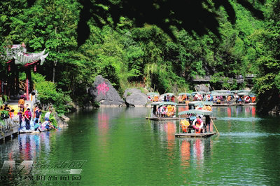 游客在佛爺洞景區(qū)劃船