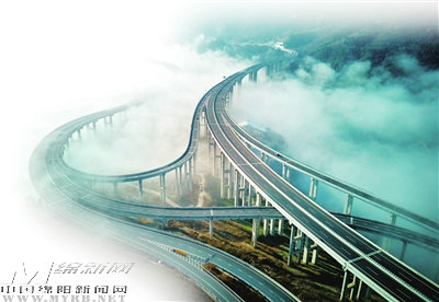 云霧中的九綿高速平武互通