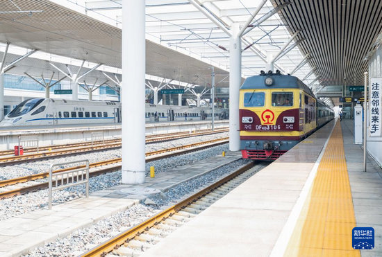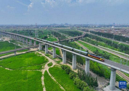8月2日,檢測(cè)列車駛出包頭站。新華社發(fā)