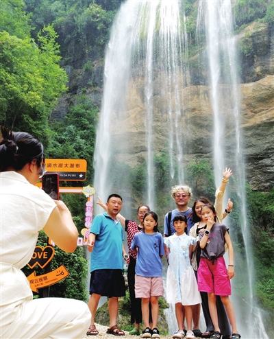 依托涼爽氣候,雙紫村特色民宿也迎來避暑高峰。游客漫步山間呼吸清新空氣,品嘗農(nóng)家菜,或沿新建步道直達(dá)瀑布打卡,體驗“住于景中、游在咫尺”的便利。