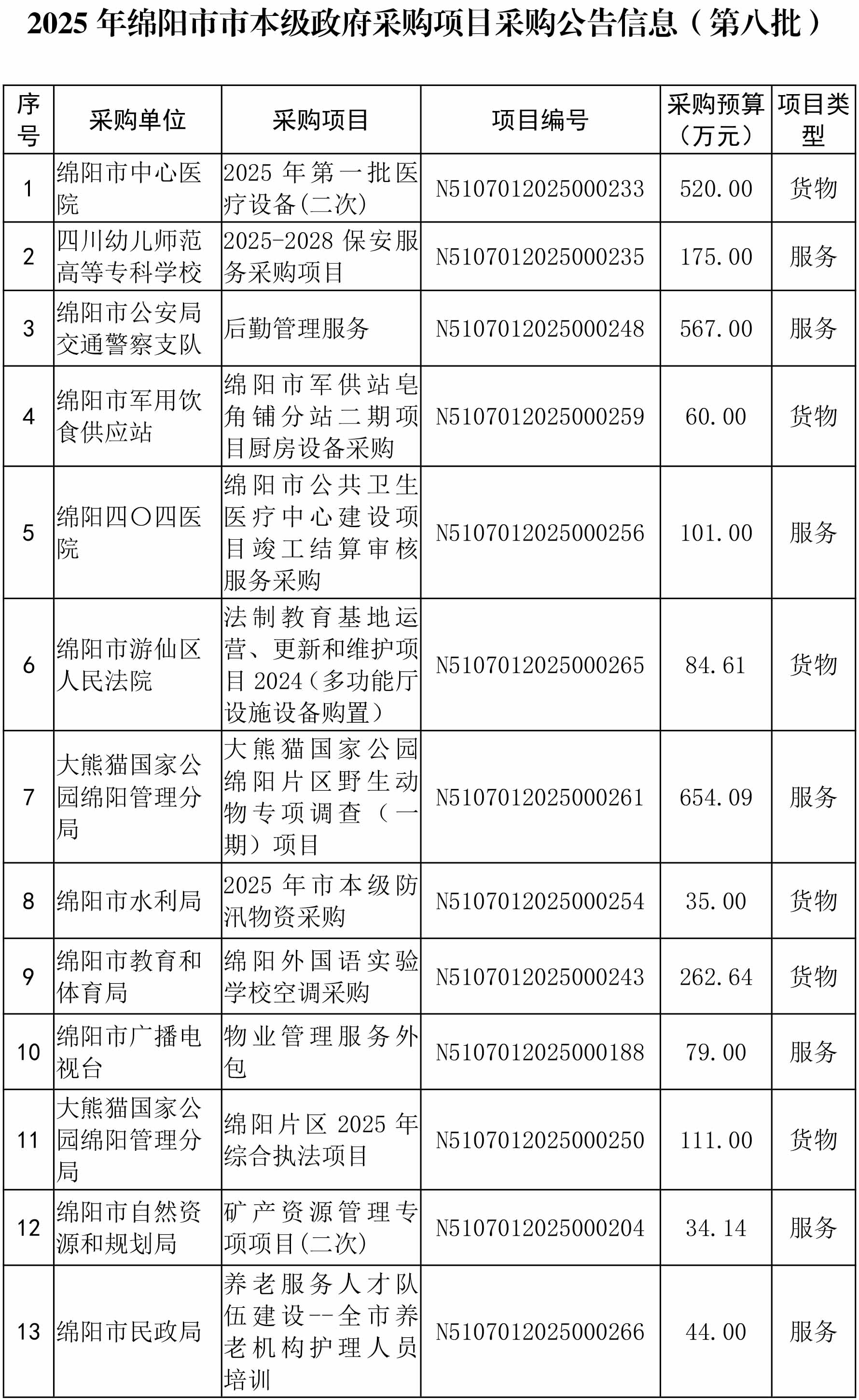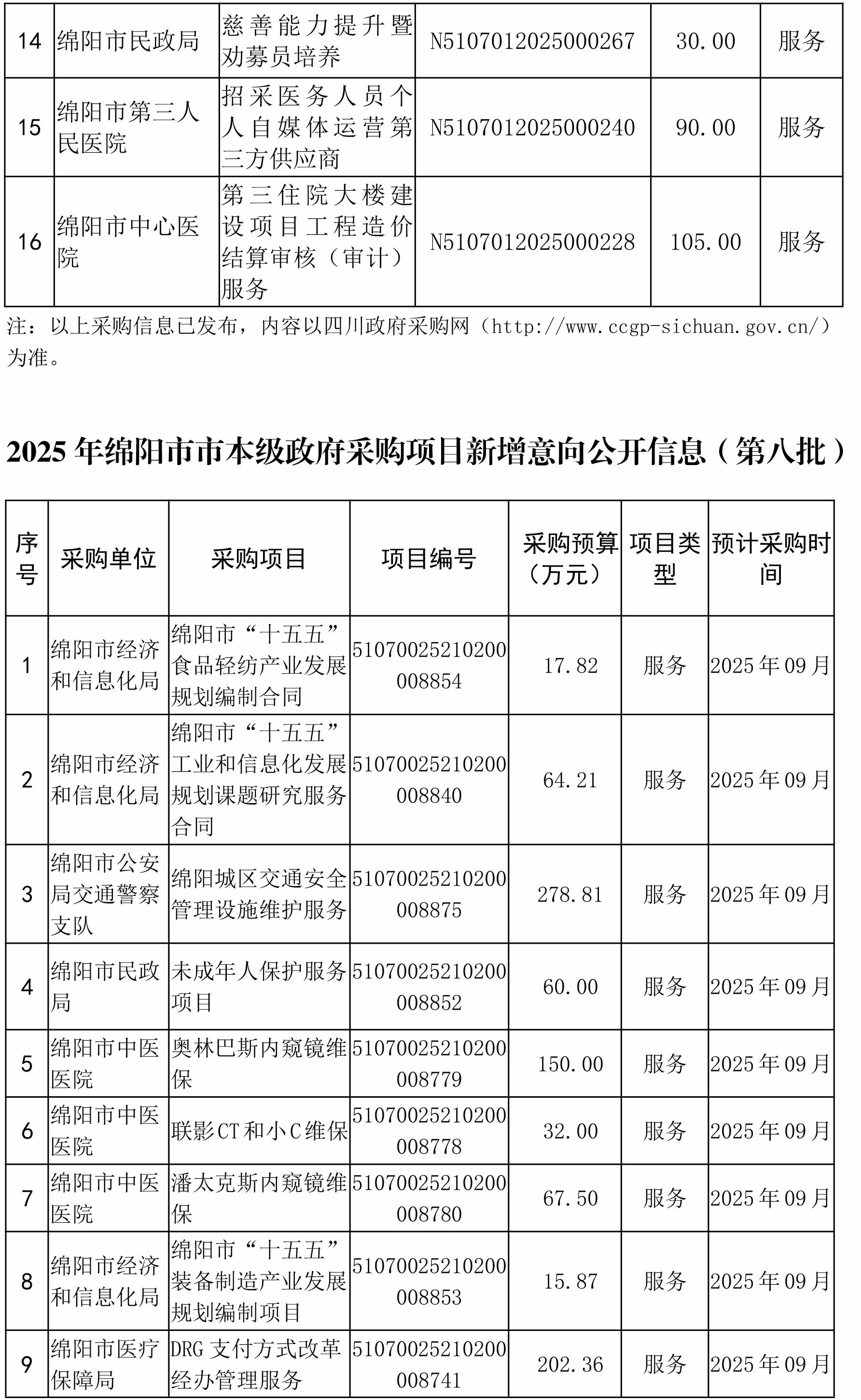 44個(gè)政府采購項(xiàng)目的“機(jī)會(huì)清單”出爐!(2025年第八批)綿陽市市本級(jí)政府采購項(xiàng)目信息動(dòng)態(tài)(2025年第八波)