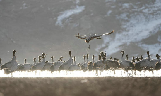 黑頸鶴主要棲息在高原海拔2500米至5000米的草甸、沼澤地帶,是世界上唯一生長、繁殖在高原的鶴類,也是國家一級保護動物,有“高原仙子”的美稱。每年3月中下旬,黑頸鶴向北方各繁殖地遷徙;10月,開始結群帶領幼鳥南遷至西藏林周等地越冬。