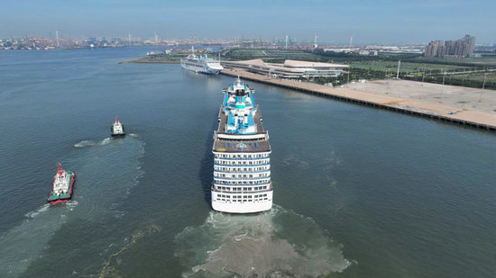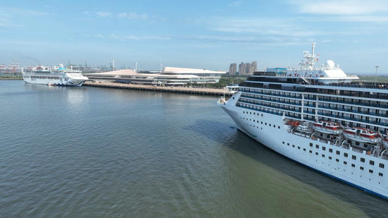 “愛達·地中海”號郵輪靠泊天津國際郵輪母港。新華社發(fā)