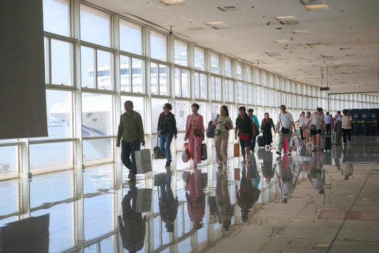 在天津國際郵輪母港剛剛下船的旅客。新華社發(fā)