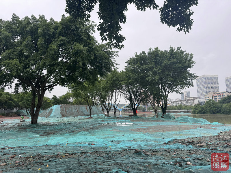 在安昌河樊華大橋至安昌橋段岸線恢復(fù)改造工程新老茶樹地塊,記者看到,右岸地面建筑已拆除,工人們正在進行灘地平整和種植土回填作業(yè),已完成回填的區(qū)域均覆蓋了防塵網(wǎng)。