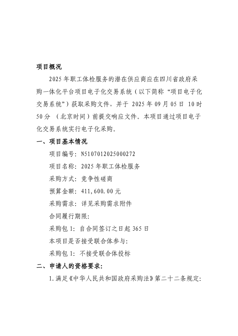 綿陽市發(fā)展和改革委員會2025年職工體檢服務競爭性磋商公告