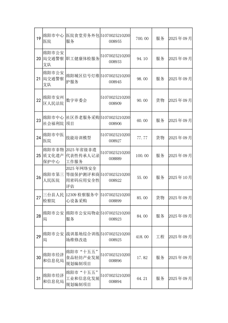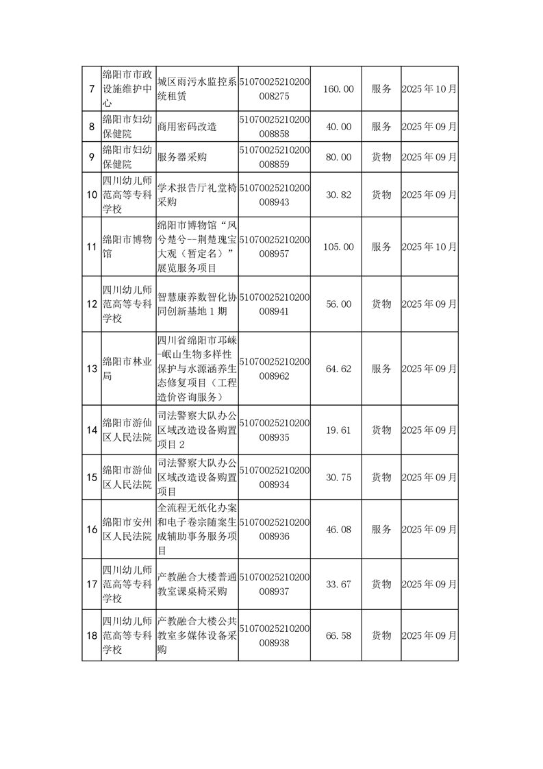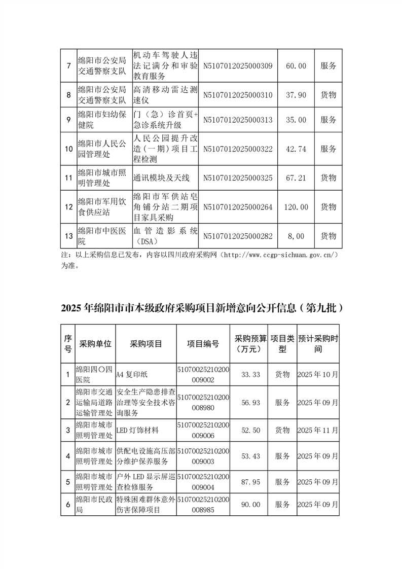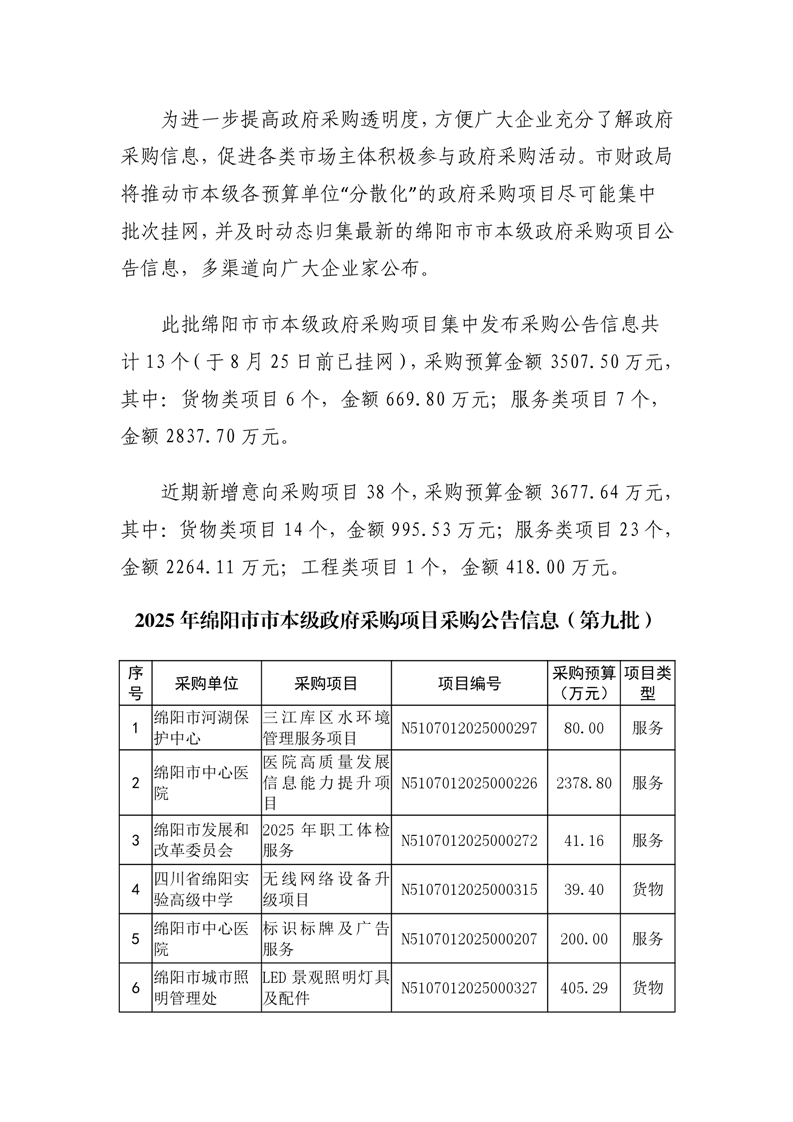 51個(gè)政府采購(gòu)項(xiàng)目的“機(jī)會(huì)清單”出爐?。?025年第九批)綿陽(yáng)市市本級(jí)政府采購(gòu)項(xiàng)目信息動(dòng)態(tài)(2025年第九波)