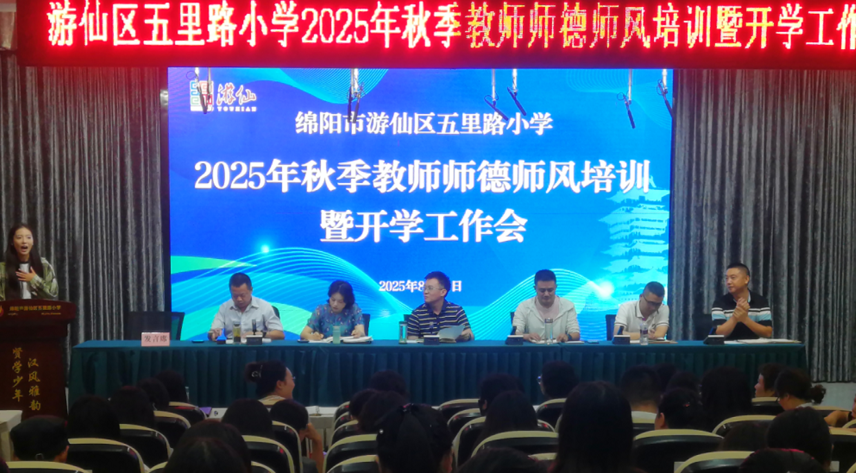 綿陽新聞網(wǎng)訊 為了確保新學年開學工作安全、順利、高質量進行,8月30日上午,游仙區(qū)五里路小學隆重召開了以“攜手赴新約, 響奏奮進曲”為主題的2025年秋季師德師風培訓暨開學工作會。本次會議既是對新學年工作的全面統(tǒng)籌,更是一場凝聚共識、激發(fā)動力的精神盛宴,為學校高質量發(fā)展奠定堅實基礎。