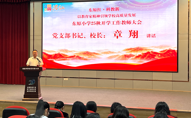 會議伊始,該校黨支部書記、校長章翔發(fā)表了熱情洋溢且意義深遠(yuǎn)的講話。他肯定了學(xué)校上一學(xué)年取得的輝煌成績,著重解讀了“東原紅 科教新”“教育家精神”“六個起來”文化內(nèi)涵,并傳達(dá)上級會議精神。