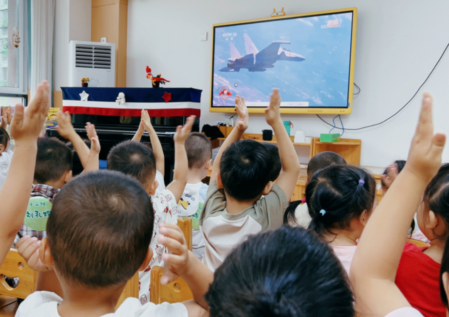 隨后,全體師幼共同觀看了閱兵式,整齊的方陣和威武的裝備讓孩子們對“力量”與“守護(hù)”有了更直觀的認(rèn)識。
