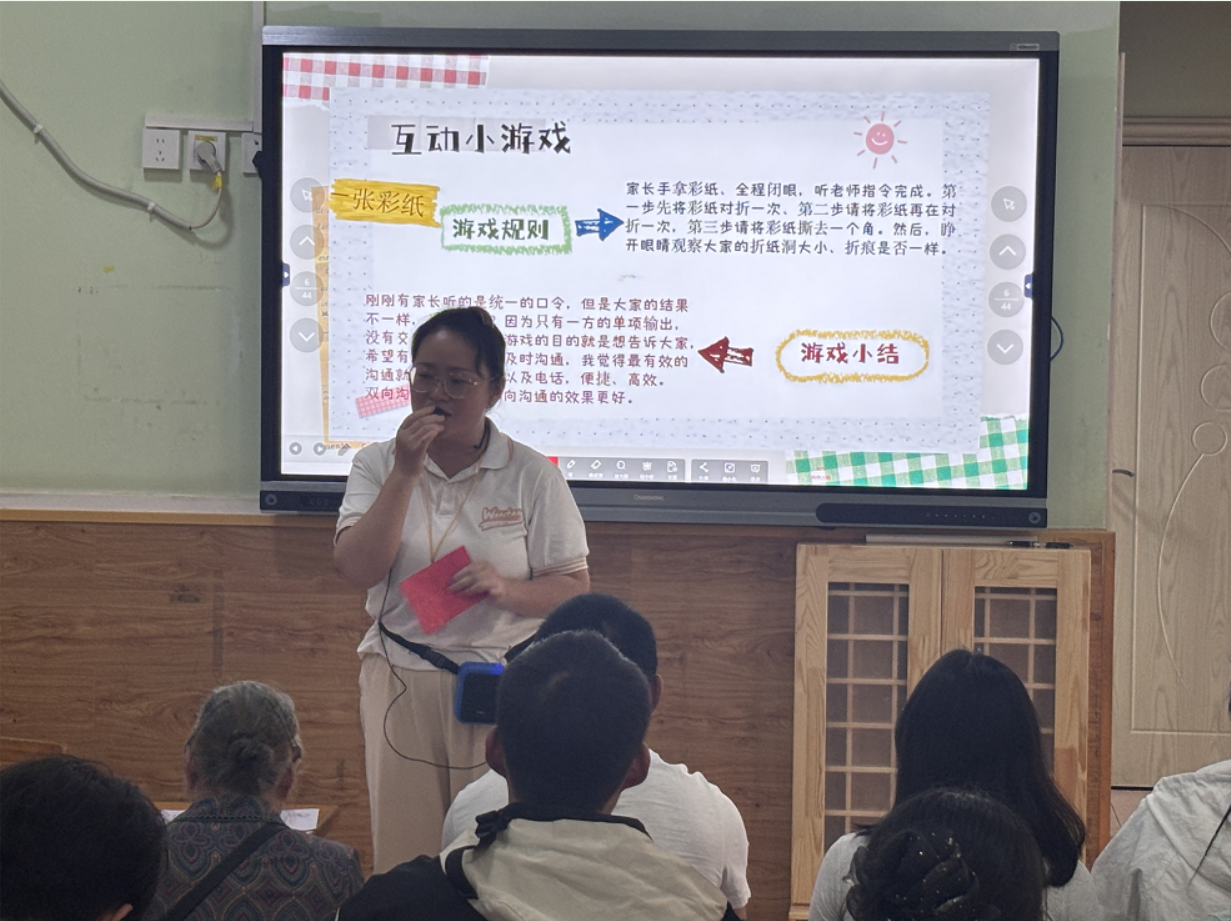 會(huì)議伊始,老師們通過精心設(shè)計(jì)的會(huì)前小游戲《你說我做》和《撕紙樂》,迅速拉近了與家長(zhǎng)的距離。隨后,老師們?cè)敿?xì)講解了各年齡段幼兒的發(fā)展目標(biāo),并就本學(xué)期的班級(jí)情況、教學(xué)重點(diǎn)、活動(dòng)安排、一日生活流程及行為習(xí)慣培養(yǎng)等內(nèi)容,向家長(zhǎng)們進(jìn)行了深入淺出的解讀。結(jié)合幼兒的年齡特點(diǎn),老師們分析了孩子們?cè)趫@的表現(xiàn)和成長(zhǎng)變化,并針對(duì)如何幫助幼兒順利適應(yīng)新學(xué)期生活、培養(yǎng)良好的生活及學(xué)習(xí)習(xí)慣等方面,提出了科學(xué)的教育建議。