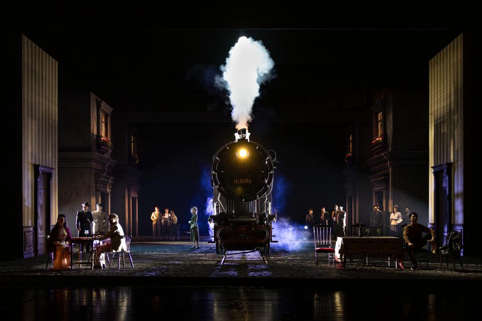 不同于老版的寫(xiě)實(shí)內(nèi)景,這一版演出舞臺(tái)設(shè)計(jì)以外景為主,一列老式蒸汽火車(chē)隨劇情推進(jìn)在臺(tái)上行進(jìn)、旋轉(zhuǎn)。何冰說(shuō),火車(chē)這一意象,一方面以視覺(jué)壓迫感象征戰(zhàn)爭(zhēng)在人們心中投下的深深恐懼,一方面也蘊(yùn)含“它也可以帶我們?nèi)ミh(yuǎn)方”的溫暖希望。(記者白瀛)