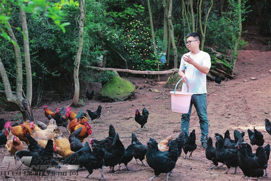 “咕咕咕……”近日,游仙區(qū)仙鶴鎮(zhèn)洛水村穎菲農(nóng)場(chǎng)里,梁城的呼喚聲剛響起,滿(mǎn)山的麻羽雞、五黑雞便撲棱著翅膀向他飛奔而來(lái)。這位自嘲是“山大王”的“新農(nóng)人”,始于對(duì)鄉(xiāng)親們的心疼。