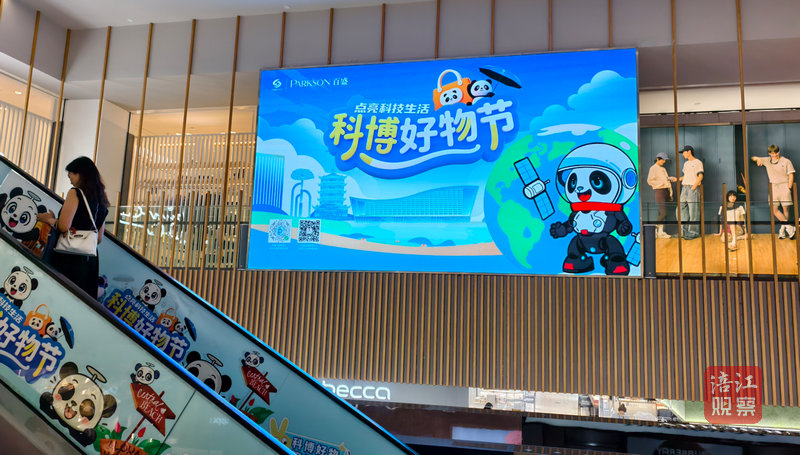 萌萌口中的可愛熊貓就是“科寶”,是第十三屆中國(綿陽)科技城國際科技博覽會的吉祥物。距9月26日科博會正式開幕還有一段時間,但這只“科寶”已帶著它的“好物節(jié)”,搶先“攻占”了城區(qū)百盛、樂薈城等商超,為這場科技盛會預熱的同時,也悄然改變著人們對于“科技”的刻板印象。