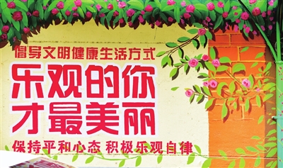 年輕志愿者關(guān)愛(ài)老人、大熊貓騎上紅色鯉魚(yú)……這些生動(dòng)有趣的畫(huà)面不僅營(yíng)造出溫馨和諧、活潑生動(dòng)的社區(qū)氛圍,更在潛移默化中引導(dǎo)居民展現(xiàn)動(dòng)人的風(fēng)采——“樂(lè)觀的你才最美麗”。