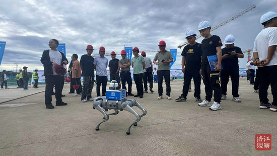 綿陽新聞網(wǎng)訊 9月12日,中建三局綿陽科技城新區(qū)教育園區(qū)建設(shè)項(xiàng)目現(xiàn)場(chǎng)一派繁忙而有序的景象:智能機(jī)器人往來穿梭作業(yè),高清大屏上數(shù)據(jù)實(shí)時(shí)躍動(dòng),觀摩人群駐足圍觀——一場(chǎng)充滿科技感的智慧建造展示正在這里上演。當(dāng)天,2025年綿陽市建設(shè)工程“質(zhì)量月”活動(dòng)啟動(dòng)儀式暨省級(jí)智能建造試點(diǎn)項(xiàng)目現(xiàn)場(chǎng)觀摩會(huì)在此舉行。