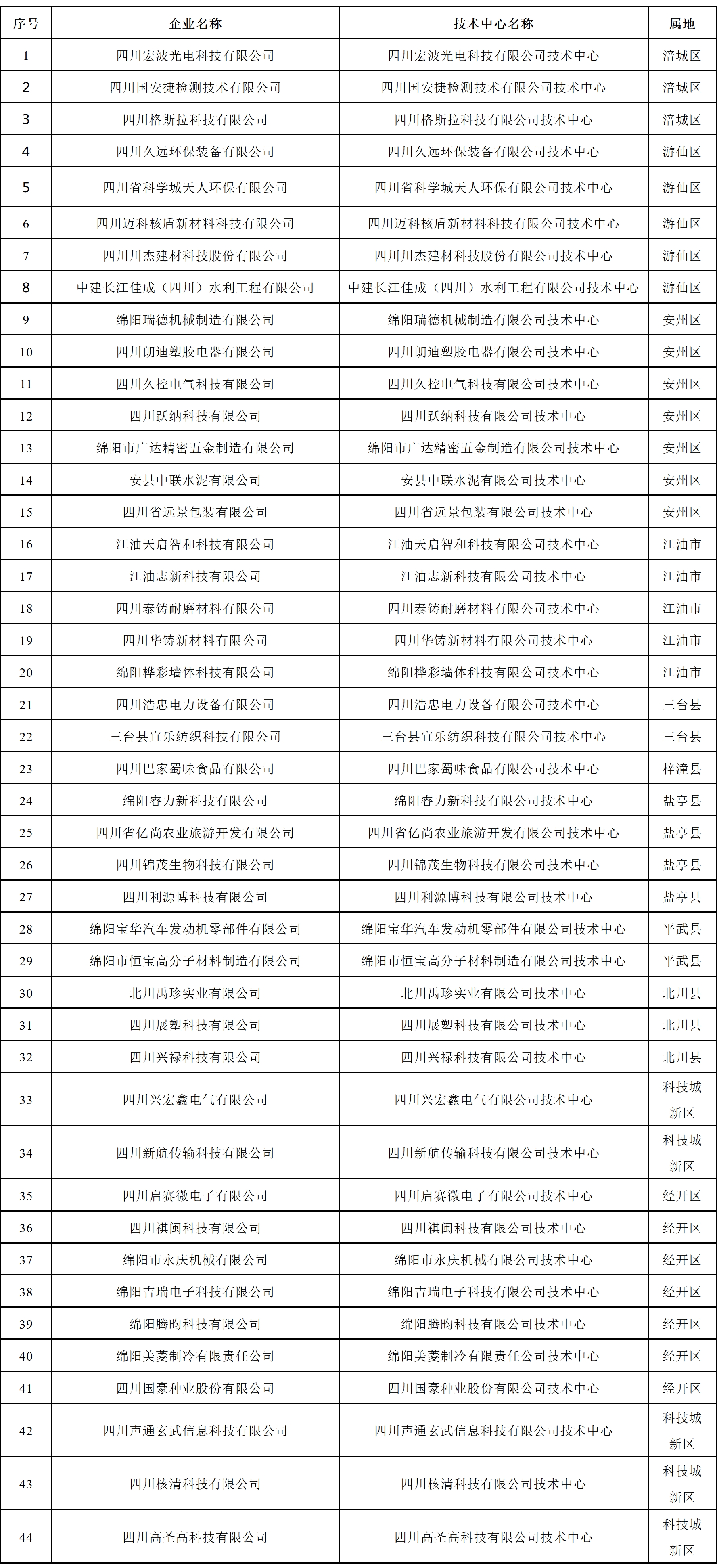 2025年(第23批)新認定綿陽市企業(yè)技術中心名單