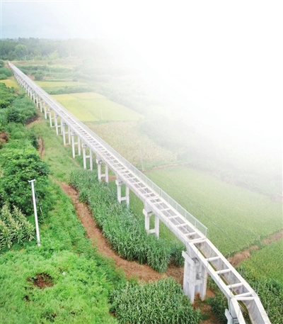 安江干渠安州段始于黃土鎮(zhèn)江池村的馬道梁子,終于花荄鎮(zhèn)九合村的楊家庵,全長(zhǎng)9.06公里,在空中俯瞰,宛如一條臥龍蜿蜒橫亙于山地間,為四周百姓帶去清泉與希望。安州區(qū)水利局水利股副股長(zhǎng)謝甜表示,工程在規(guī)劃之初,就將“節(jié)水優(yōu)先”理念貫穿始終,渠身建設(shè)采取高強(qiáng)度的防滲混凝土材料,能將灌溉水利用系數(shù)從0.53提升至0.65,并通過(guò)一系列措施,預(yù)計(jì)每年比傳統(tǒng)渠道減少輸水損失逾100萬(wàn)立方米,極大提高水資源利用率。