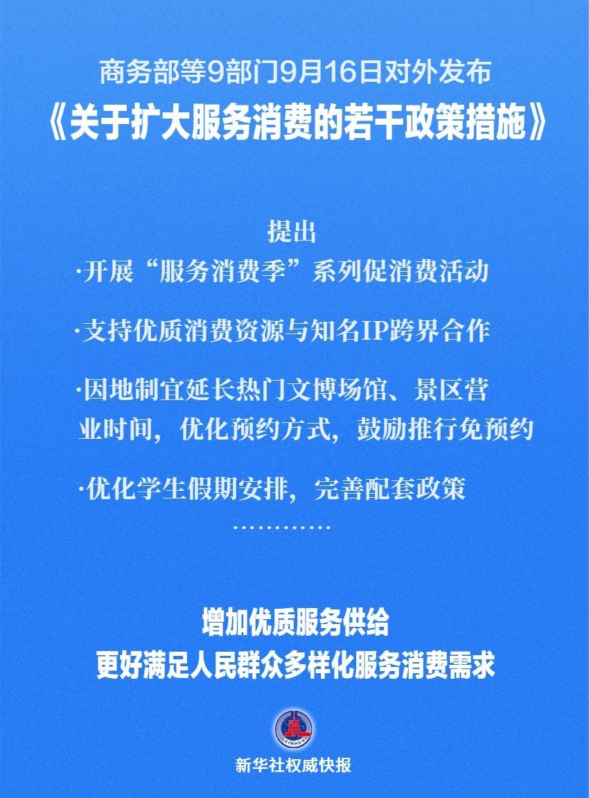 商務(wù)部等9部門9月16日對外發(fā)布《關(guān)于擴(kuò)大服務(wù)消費的若干政策措施》,提出五方面19條舉措,包括: